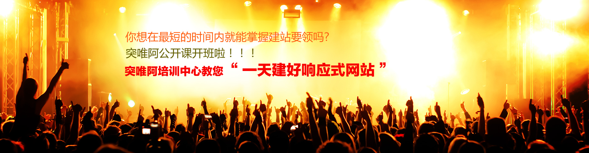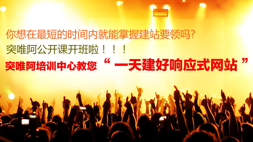 2015年6月28日在突唯阿总部将开展“一天建好响应式网站”第(3)期培训公开课,大师现场教您如何在最短的时间内掌握响应式网站建站要领,如果您想让您的网站与众不同,请联络我们在线客服MM报名或登陆train.tuweia.cn在线报名,此次培训报名人数为20人;
